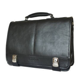 Портфель Carlo Gattini Brusado (Брусадо) выполнен из натуральной гладкой итальянской кожи черного цвета. Портфель имеет классическую жесткую конструкцию и имеет два основных отделения под клапаном, закрывающимся на цупферный замок.